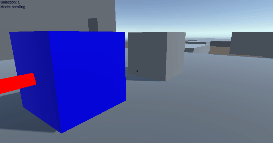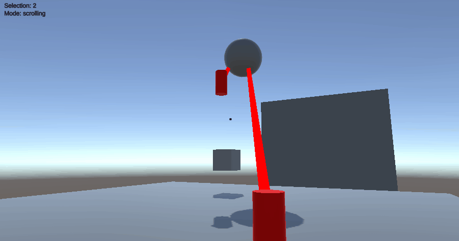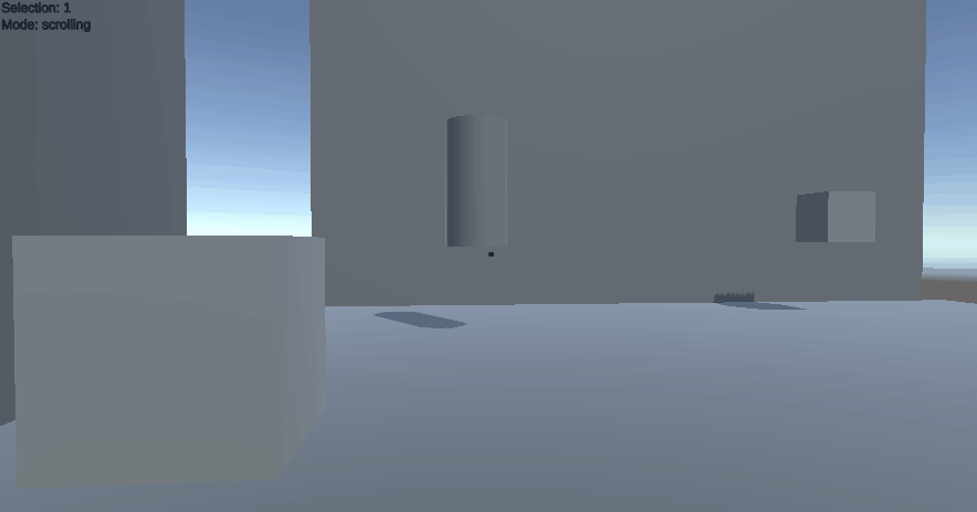 A slight change I made to the connection beam is that individual connections can be disabled one by one. This makes the game play a bit better because the player doesn't have to worry about ruining their current settings and having to start a puzzle all over again. The other thing is that while I was playing with the connection controls I realised that you could use the connection to push other object. I think this could be a cool mechanic to use at some point as it gives another way for player to use the gun.