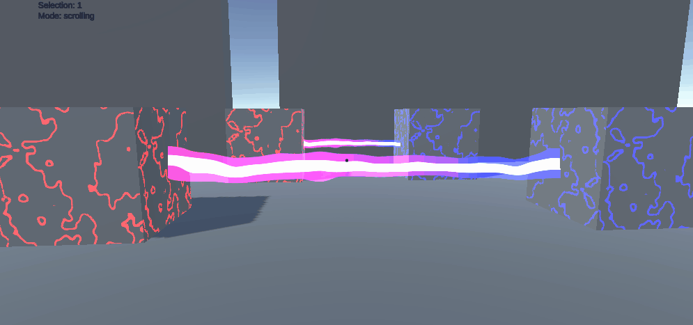 This week the visual aesthetic of the game was considered in much more depth. Using the wall texture that was developed last week, I made a customisable shader that gives us control over the line strength, pattern width, pattern height, line colour and base colour. This means the pattern can be implemented in a variety of styles to suit the specific theme of each level.